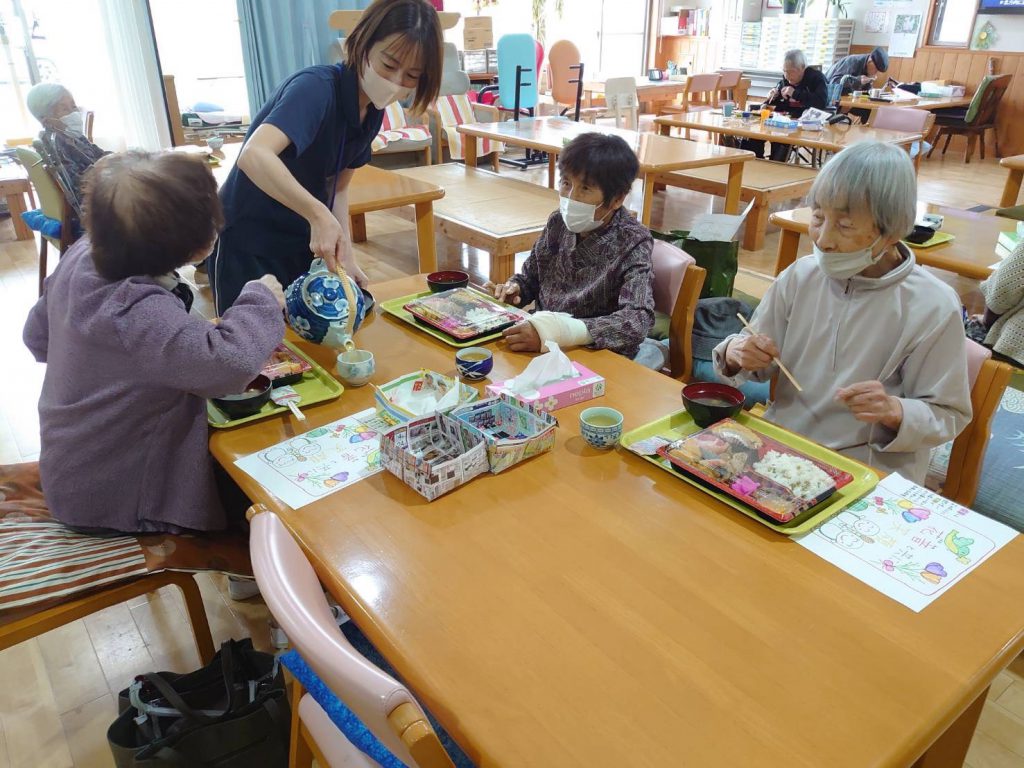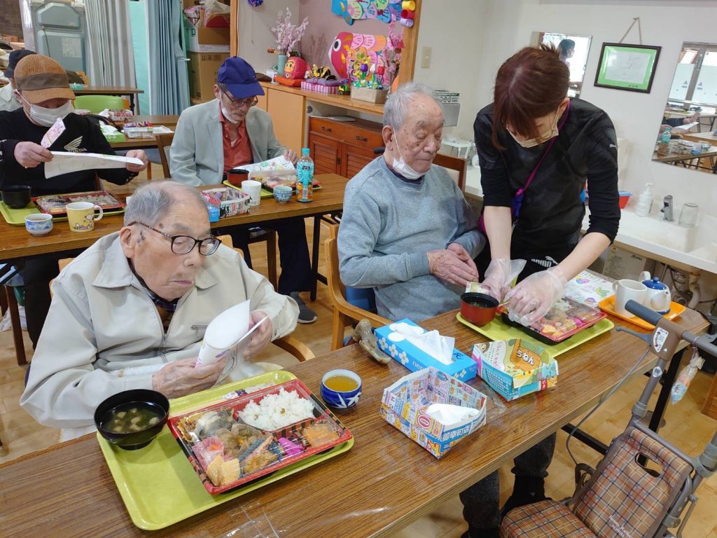 本日は、関デイの人気行事(春のイベント弁当)をご利用者様に召し上がって頂きました。