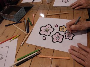他の日は、午後のレクの時間を使って、春のぬり絵や貼り絵を楽しんでいただきました。